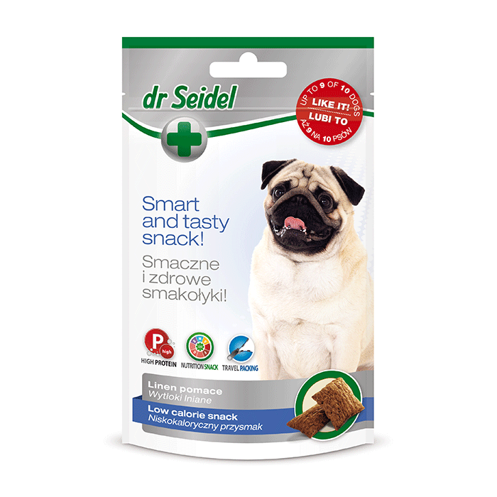 Σνακ με λίγες θερμίδες ειδικά σχεδιασμένο για σκύλους με προβλήματα βάρους ή παχυσαρκίας. Η λιχουδιά περιέχει λιναρόσπορο, μια πηγή διαιτητικών ινών που παρέχει ένα αίσθημα κορεσμού και τονώνει το πεπτικό σύστημα. Τα σνακ Dr Seidel είναι τέλεια ως σνακ μεταξύ των γευμάτων ή επιβράβευση εκπαίδευσης. Συνιστώνται ιδιαίτερα για παχύσαρκους σκύλους ή με τάση παχυσαρκίας ή ηλικιωμένους σκύλους.