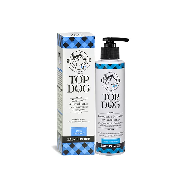 Δεν είναι τυχαία το καλύτερο σε πωλήσεις σαμπουάν κατοικιδίων της Top Dog, καθώς κηδεμόνες αλλά και τα ίδια τα κατοικίδια το έχουν λατρέψει για το καθαρό και απαλό τρίχωμα που προσφέρει, για την φροντίδα της επιδερμίδας αλλά και για το υπέροχο, διακριτικό και γλυκό άρωμα πούδρας.